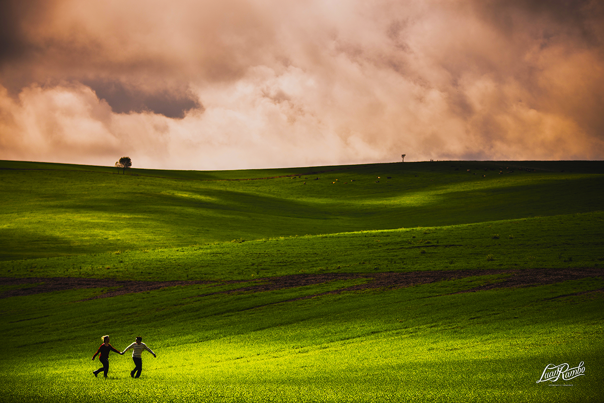 Nesse ensaio ficamos em duvida em relação ao tempo até nas ultimas horas, mas ainda bem que mantivemos a data, e de um dia que era pra ser sem sol tivemos um sol lindão surgindo no fim da manhã. Ja no começo da manhã a neblina deu um "toquezinho" de inverno em nossas fotos mas depois o sol "rachando" deu ainda mais brilho pra esse casal.